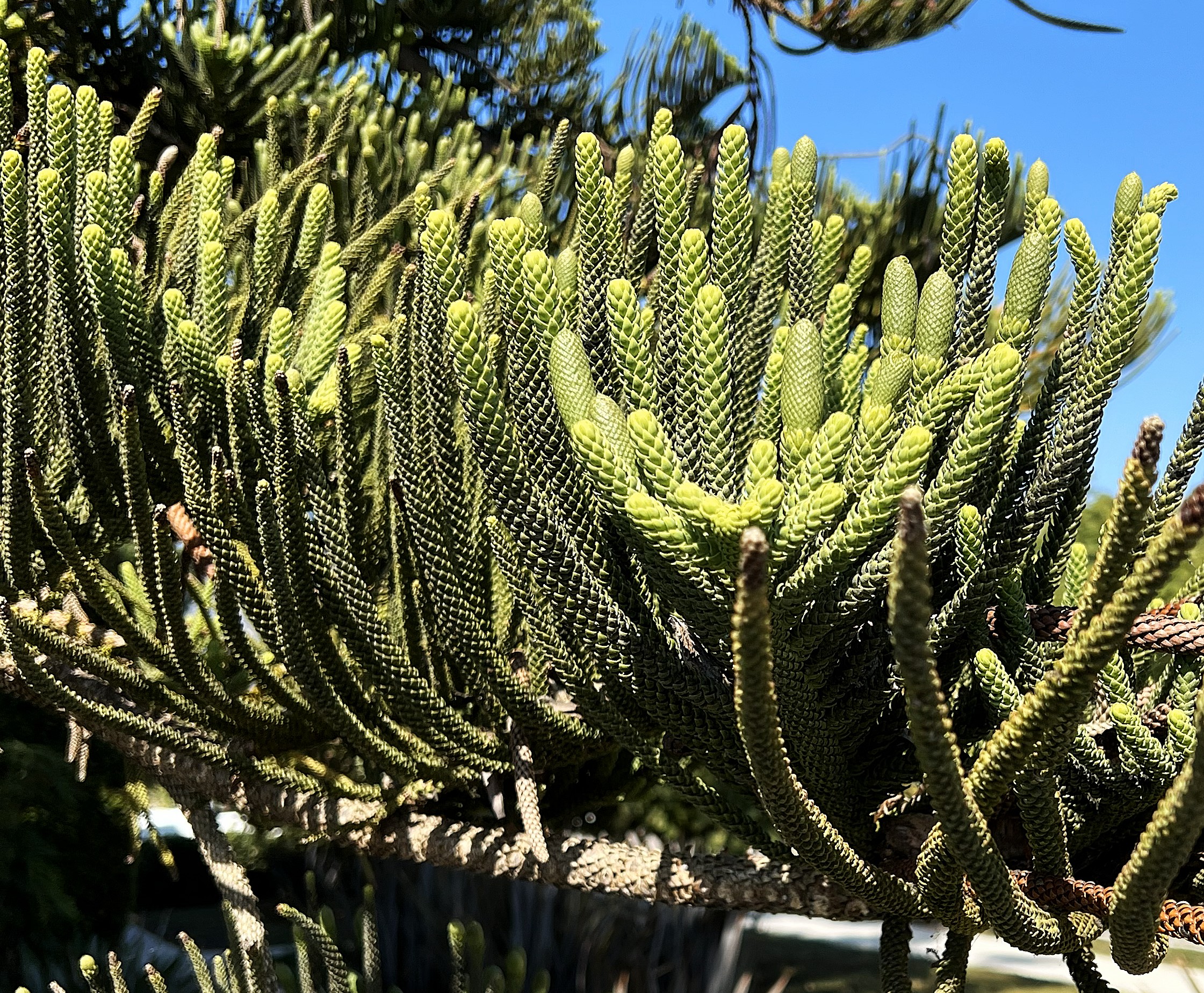 Santa Barbara’s skyline is punctuated with the upper spires of handsome trees commonly called “Norfolk Island Pine”. Because of their star-shaped top whorl of branches, they have another common name, “Star Pine”.