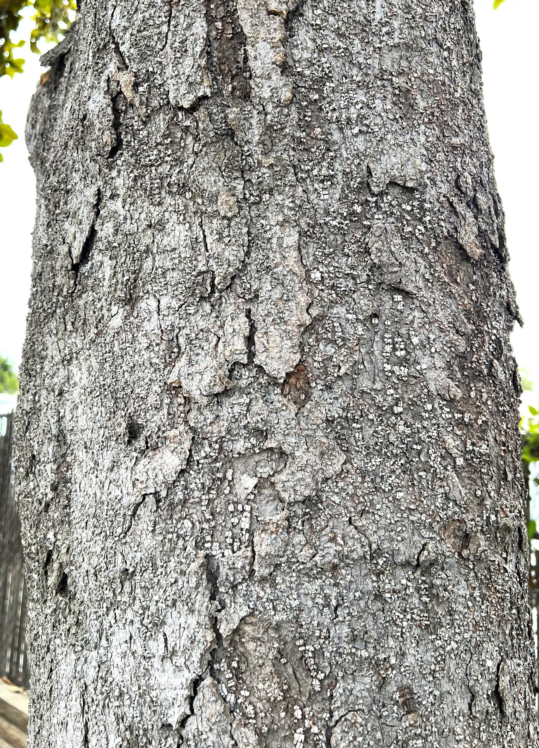 It is a slow-growing tree. However, at maturity, it can reach 50- to 60-feet in height and 45- to 50- feet in width. When the tree is young, its bark is light gray and smooth; with age, it will turn dark gray with long flaking scales.