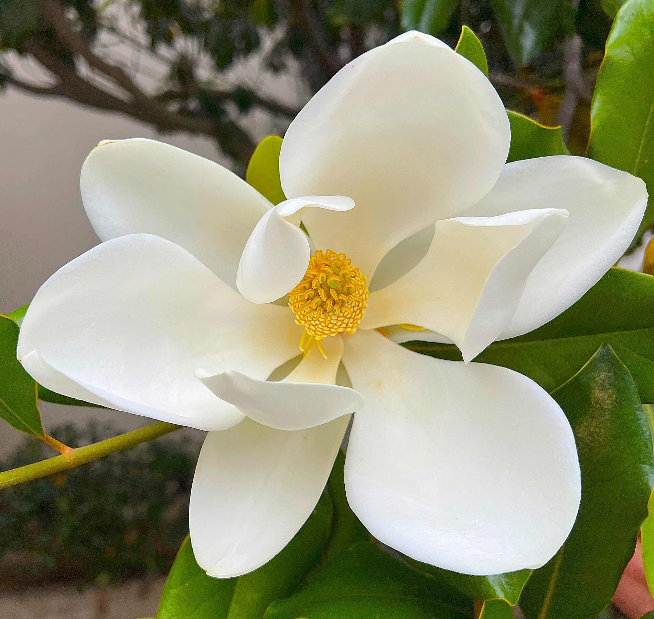 “Southern Magnolia” is its common name in our community; in its native range, its other common name is “Bull Bay”. It is in the Magnoliaceae plant family and is known botanically as Magnolia grandiflora. The genus name, Magnolia, honors the French botanist Pierre Magnol (1638-1715). The species name, grandiflora, is a combination of the two Latin words, “grandis”, meaning “big”, and “flor”, meaning “flower”, together meaning “large or beautifully flowered”.
