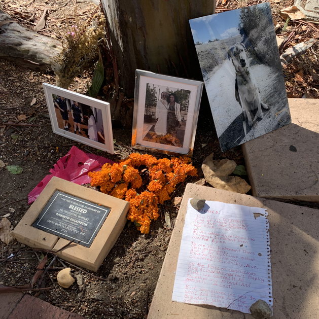 All around town there are plaques adorned with thoughtful mementos, photos, hand-written notes, drawings and flowers, creating touching shrines to those they honor.
